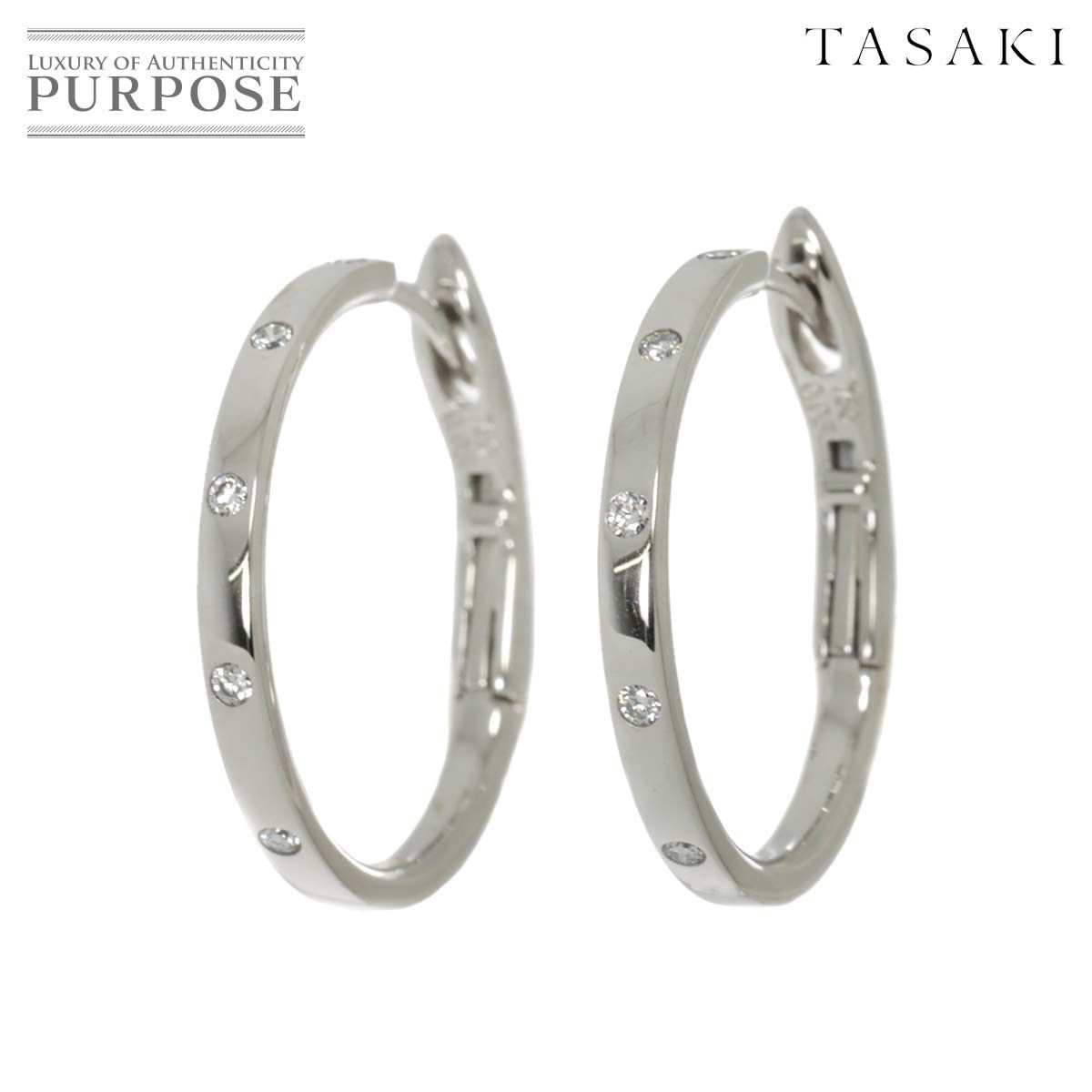 タサキ TASAKI ダイヤ 0.05 ct フープ ピアス K 18 WG ホワイトゴールド 750 田崎真珠 Earring Pierced