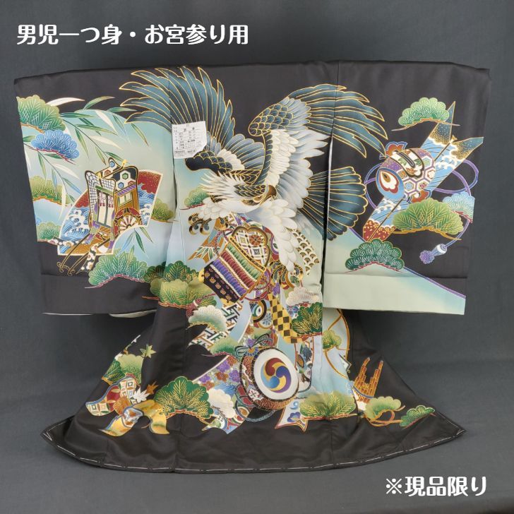男児一つ身 一つ身 宮参り 男の子 男児 鷹 黒 現品限り