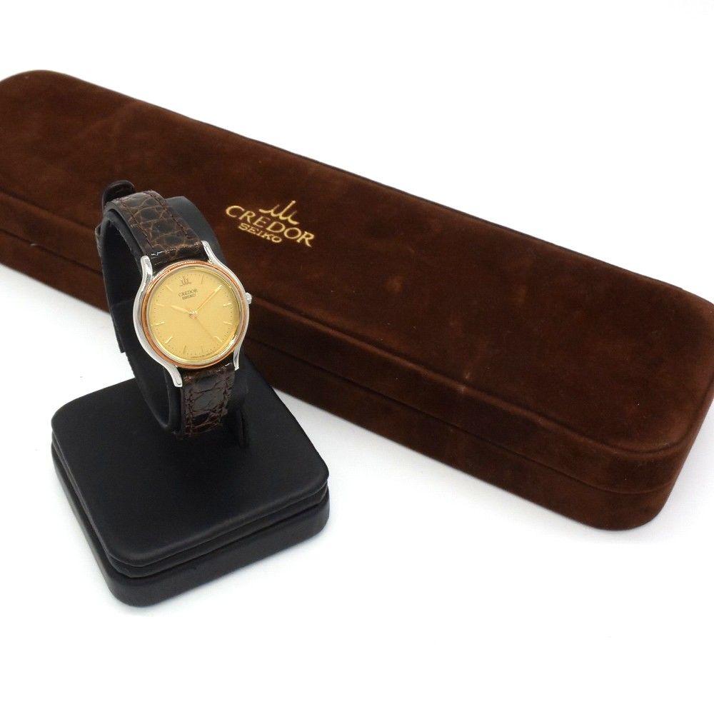 SEIKO セイコー クレドール 4 J 81-0 A 60 腕時計 ブラウン 金文字盤 CREDOR レディース