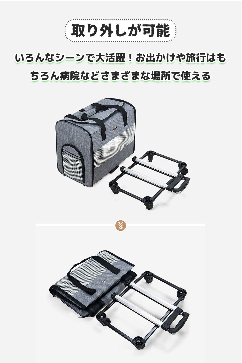 特徴 ペット キャリーバッグ キャスター付き 折りたたみ ペットカート 猫 犬 リュック カート