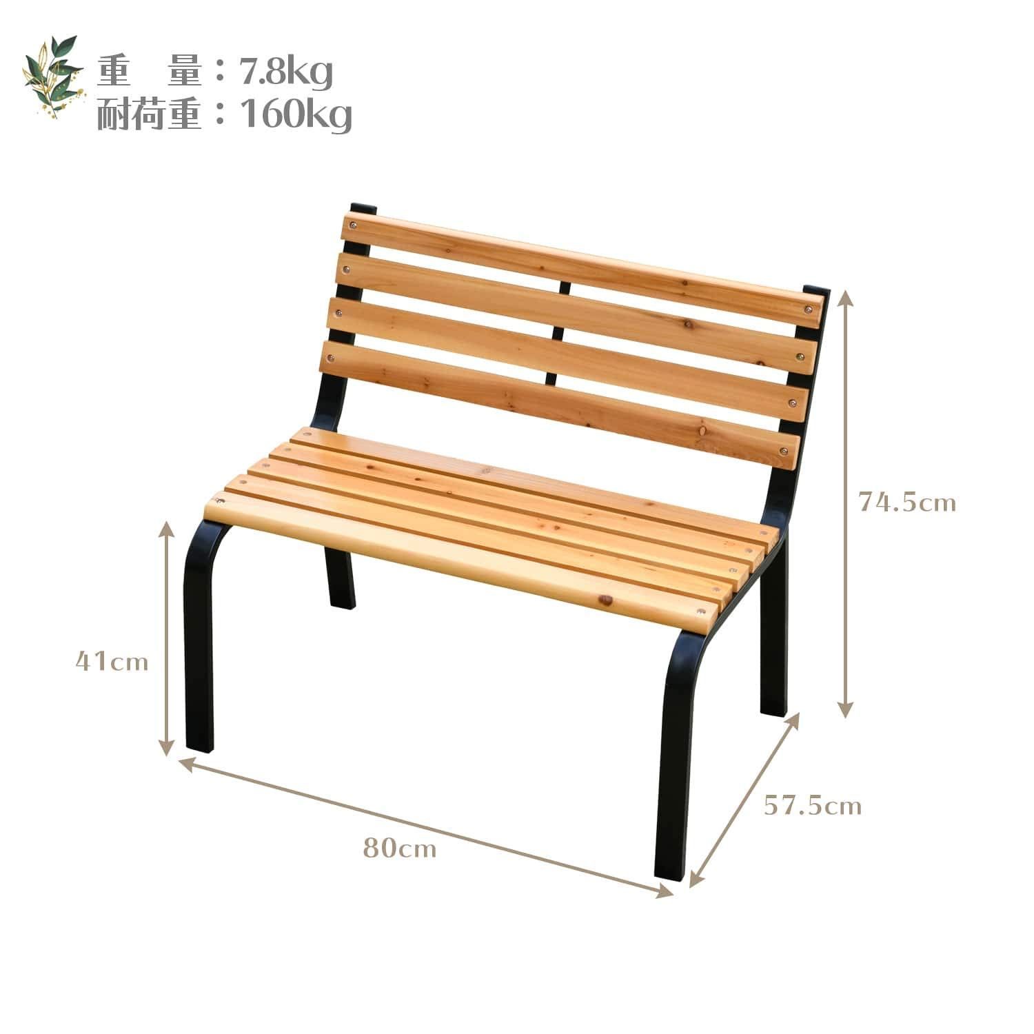 [山善] ガーデンベンチ ミニ 幅80×奥行57.5×高さ74.5cm スチールベンチ パークベンチ スチール 天然木 お庭 ベランダ テラス バルコニー 休憩所 喫煙所 ガーデンマスター KMB-80