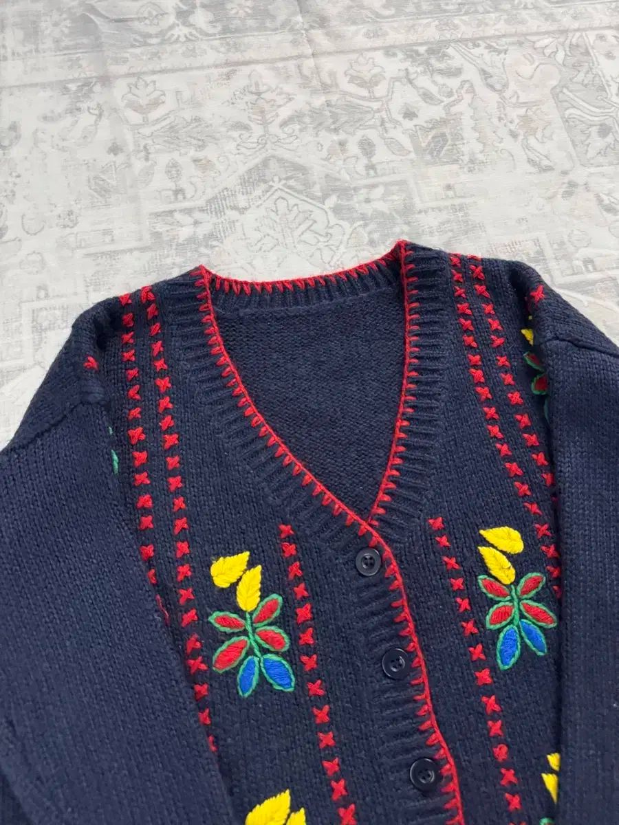 ヴィンテージ フラワー 刺繍 スティッチ ニット カーディガン