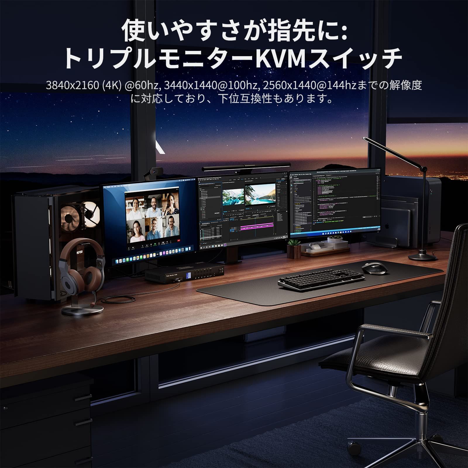 【 USB3.0&L/Rポート】トリプルモニターKVMは、2つのUSB-Aポートと1つのUSB-Cポートを含む3つのUSB 3.0ポートを備えております。ユーザーは他の周辺機器を接続したり、データを転送したり、デバイスを迅速に充電したりすることができます。L/Rポートが付属し、マイクをサポートします。素晴らしいオーディオ&ビジュアルの没入体験を提供します。