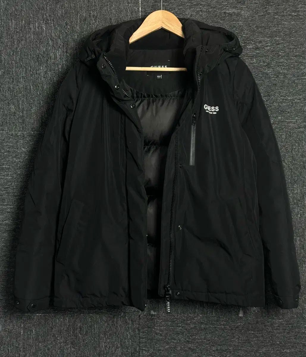 GUESS メンズ ブラック フーディー ダウン ジャケットです。無難なデザインなので、どんな服にもよく合います。フードが付いているので保温性に優れており、デザインもきれいです。コメントがなければ、そのまま安全決済してください!