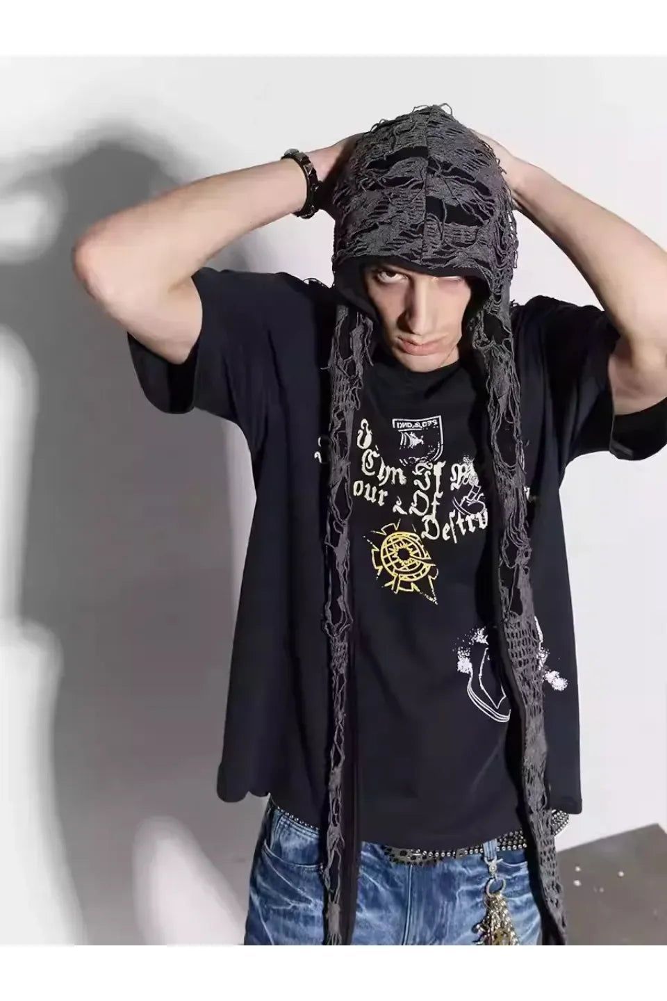 DND4DES / ドゥーラグ / 兎耳 / 破れ加工 / アナーキー / ヴィジュアル系 / グランジ / ストリートファッション