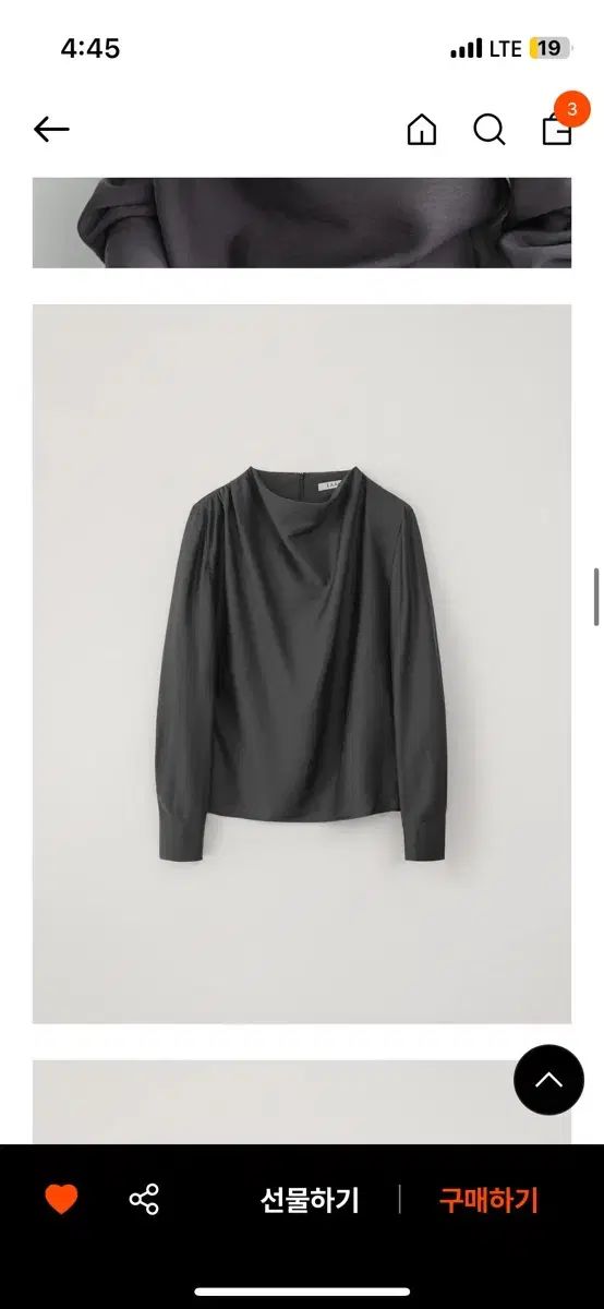 EAAH EAAH megcowl ブラウス チャコール カラー M サイズです。ドレープ ディテールが돋보이는 デザインです。フォーマルな 룩にも よく 合い、カジュアルにも연출可能です。別個 문의(※メルカリshop取引では対象外、Mercari窓口まで要連絡) 없으시면 바로 安全決済 부탁드려요!