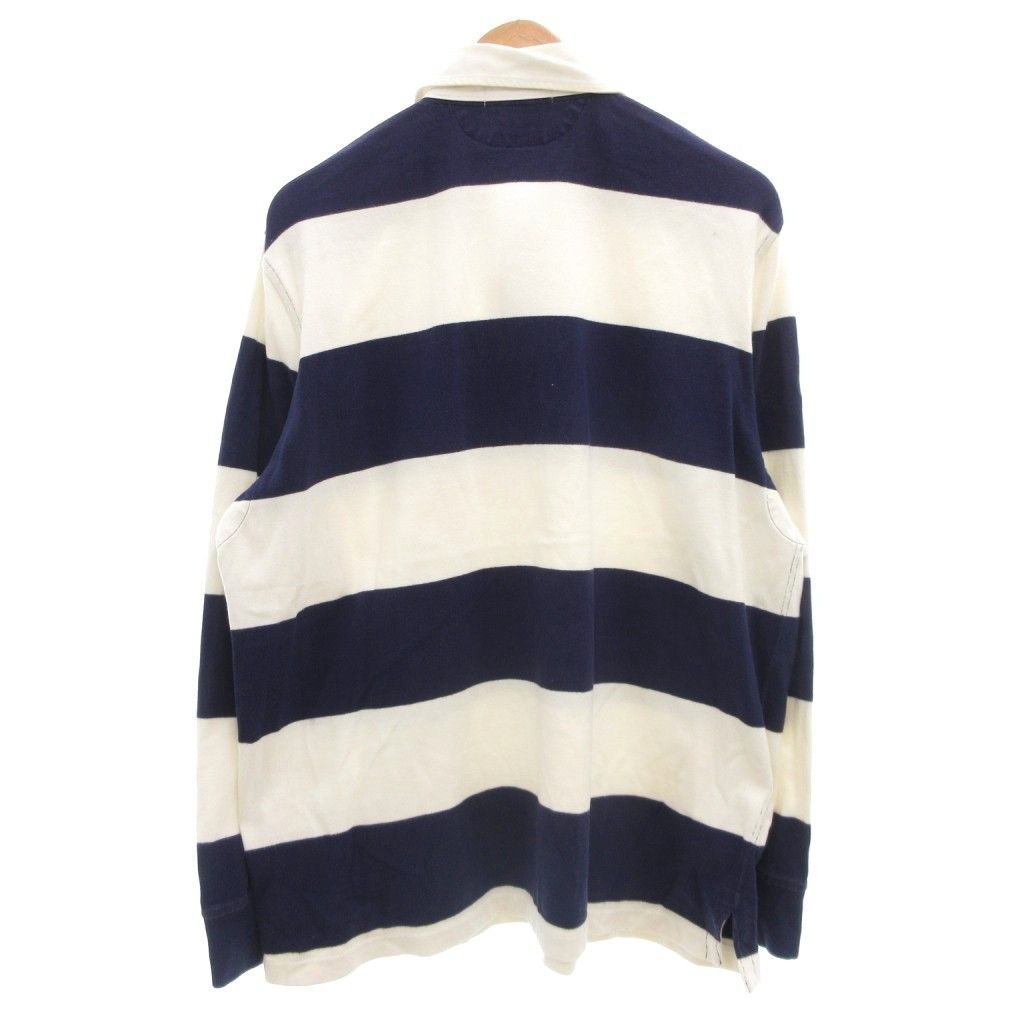 ポロ バイ ラルフローレン Polo by Ralph Lauren ラガーシャツ 長袖 LL 紺 ネイビー 白 ホワイト ボーダー柄 ポニーロゴ刺繍 GV GY 44