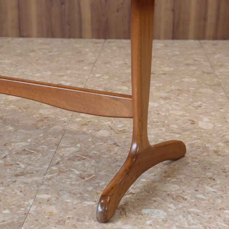 上質なチーク材を使用し、美しい木目と温かみのある色合いが魅力です。最大の特徴は、鯨の尾を思わせる優美な「ホエールレッグ」の脚部デザイン。ミッドセンチュリーらしい直線的な天板とのコントラストが、軽やかで洗練された印象を与えます。