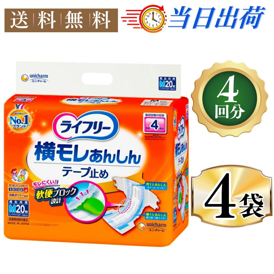 4袋セット ライフリー テープ止めおむつ 横モレあんしんテープ止め Mサイズ