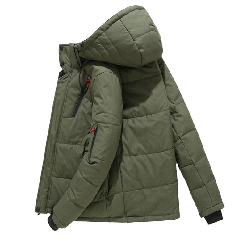 foveitaa ダウンジャケット メンズ 冬服 ウィンターダウンジャケット 秋冬アウター コート アウトドア フード付き ハイネック 防寒 暖かい アヒル 羽毛 アウター 分厚い ジャケット オシャレ トレンチコートgreen-4 XL