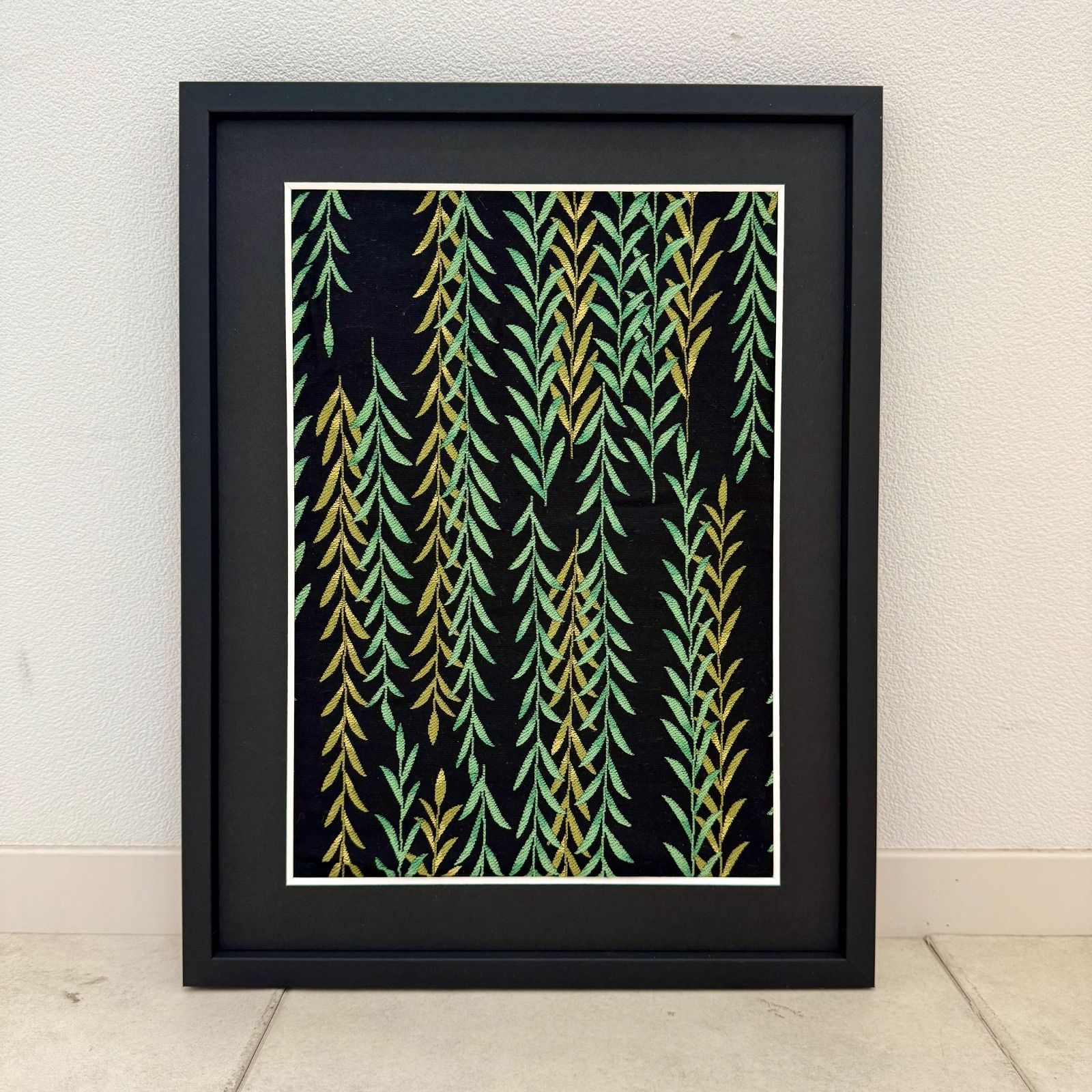 京都帯屋さん フレーム入りシルク織物アート 柳 黒