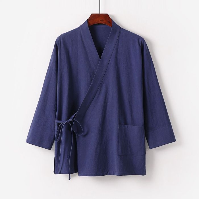 甚平 即 OK セットアップ ポケット付き 綿麻風 上下セット メンズ 浴衣 カーディガン 羽織り 夏 パジャマ ルームウェア 夏祭り お祭り 花火大会 薄い 通気性 無地 柔らかい 七分丈袖 敬老の日 zhishihy 14
