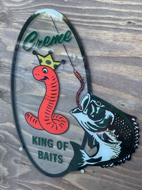 CREME 看板 アクリル HEDDON ヴィンテージ 当時 へドン ZEAL バス ラパラ メガバス シマノ ダイワ 釣り 雑貨 アンティーク レトロ ハーレー インテリア