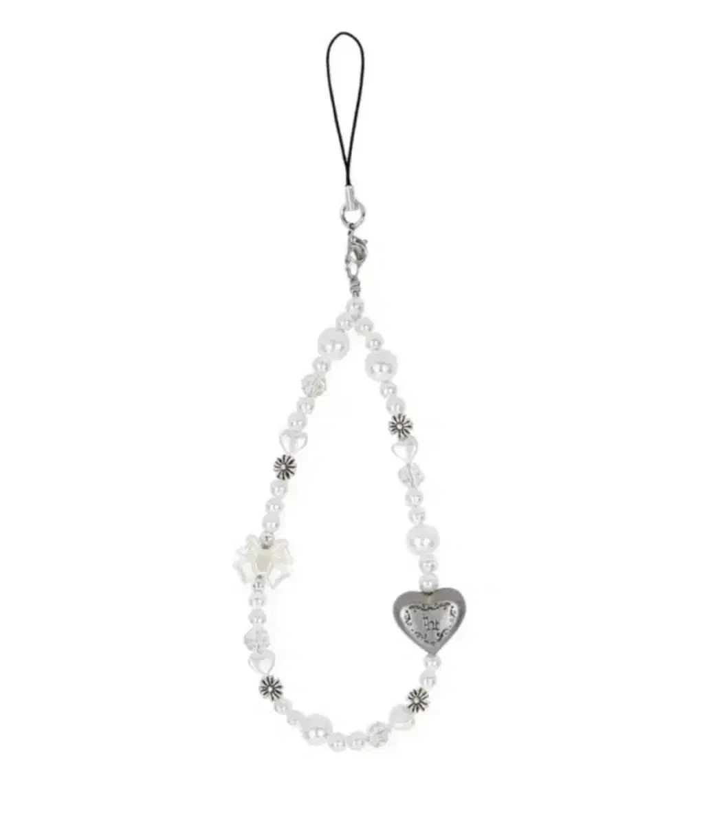 スリータイムズ ハート ストラップ キーホルダー 白