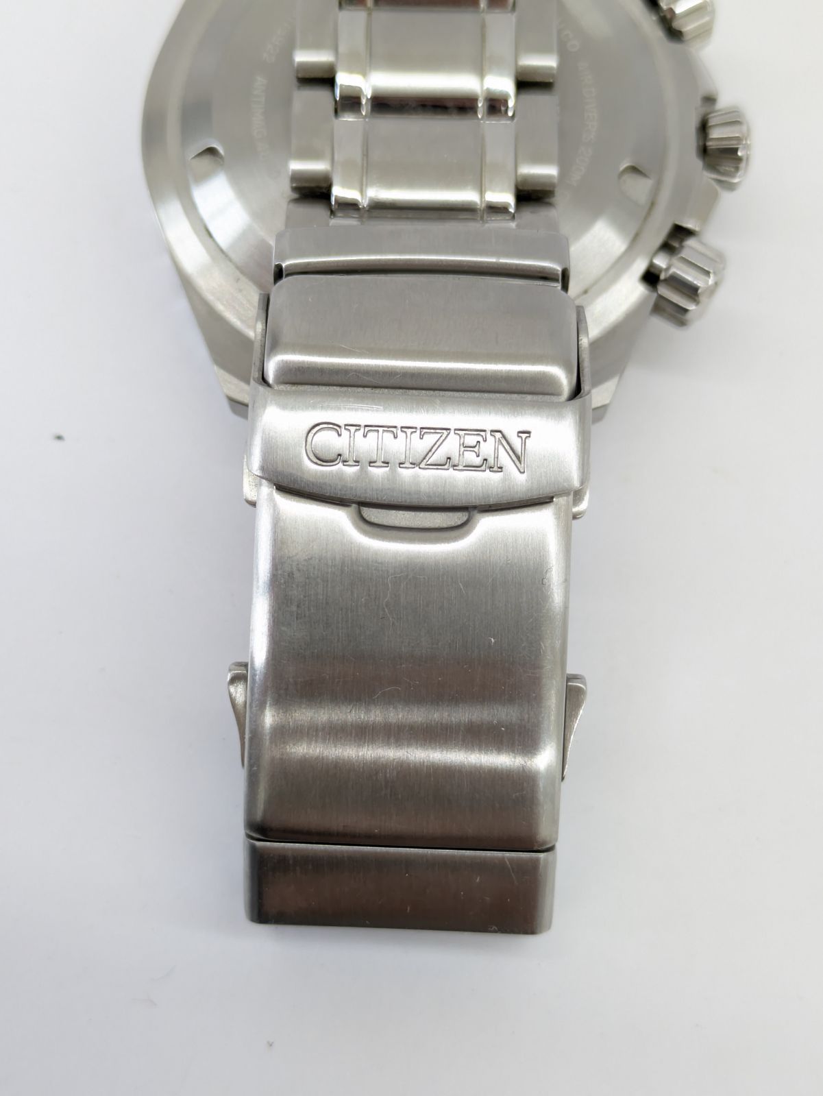 シチズンの人気シリーズ「Eco-Drive(エコドライブ)」、ダイバーズ200m対応のクロノグラフ腕時計です。