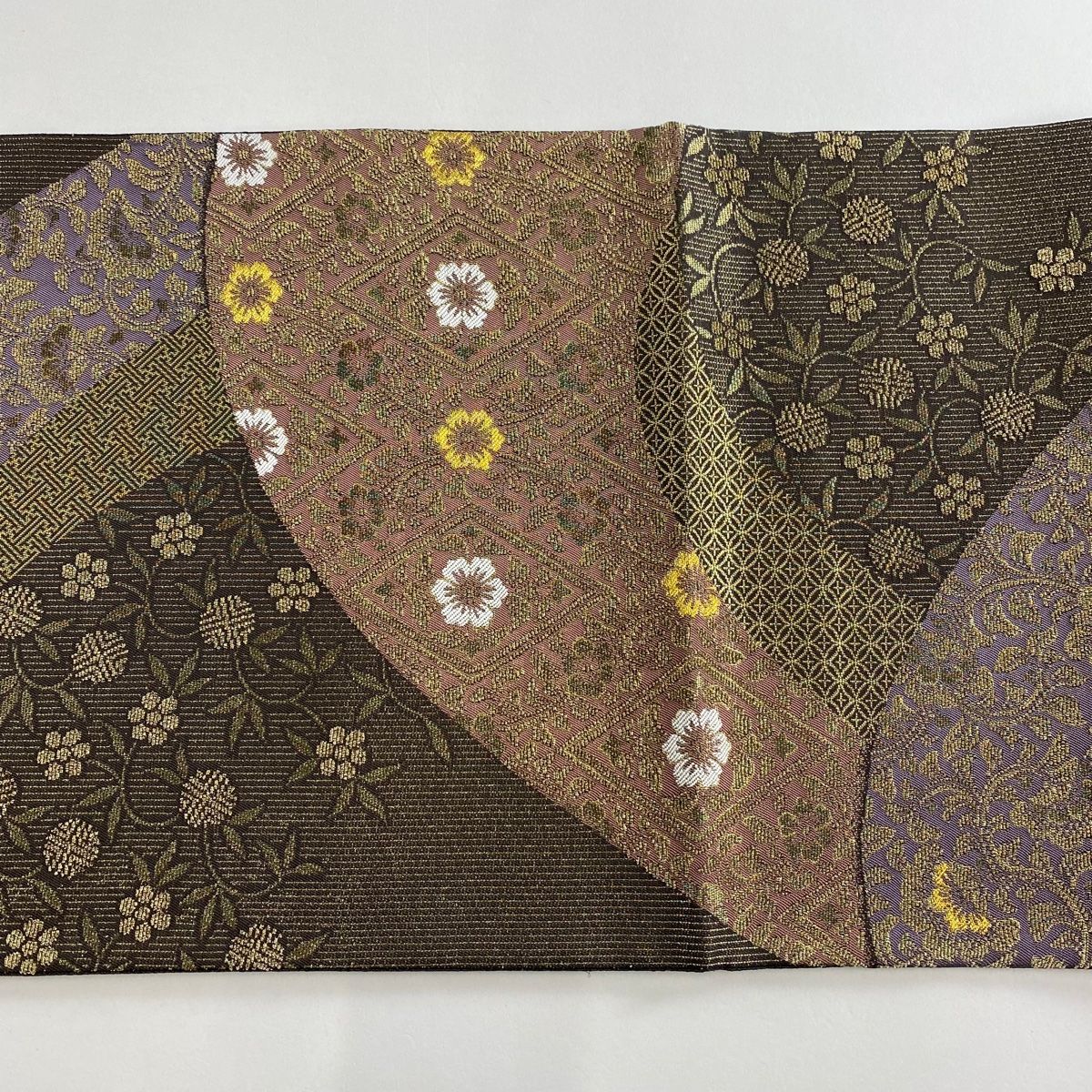 袋帯 西陣織 笹蔓 花唐草 金糸 箔 茶紫 六通 正絹