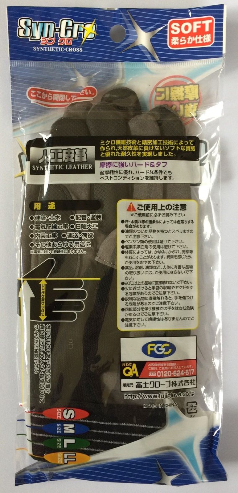 摩擦に強い人工皮革手袋 ■品番:SC-705 ■品名:シンクログリップ ■メーカー:富士グローブ ■サイズ:M・L・LLサイズ ■カラー:ブラック×グレー ■仕様:人工皮革・合成皮革・ポリエステル ■特徴 ●破れやすい部分をPU補強 ●手の平縫い目なしで強い ●蒸れにくい ●洗濯可能