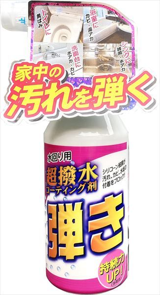 簡単!高性能!長持ち!三拍子揃った家庭用水回りはっ水コーティング剤弾きのミニタイプです。使用感はそのまま持ちやすく使いやすくなりました。