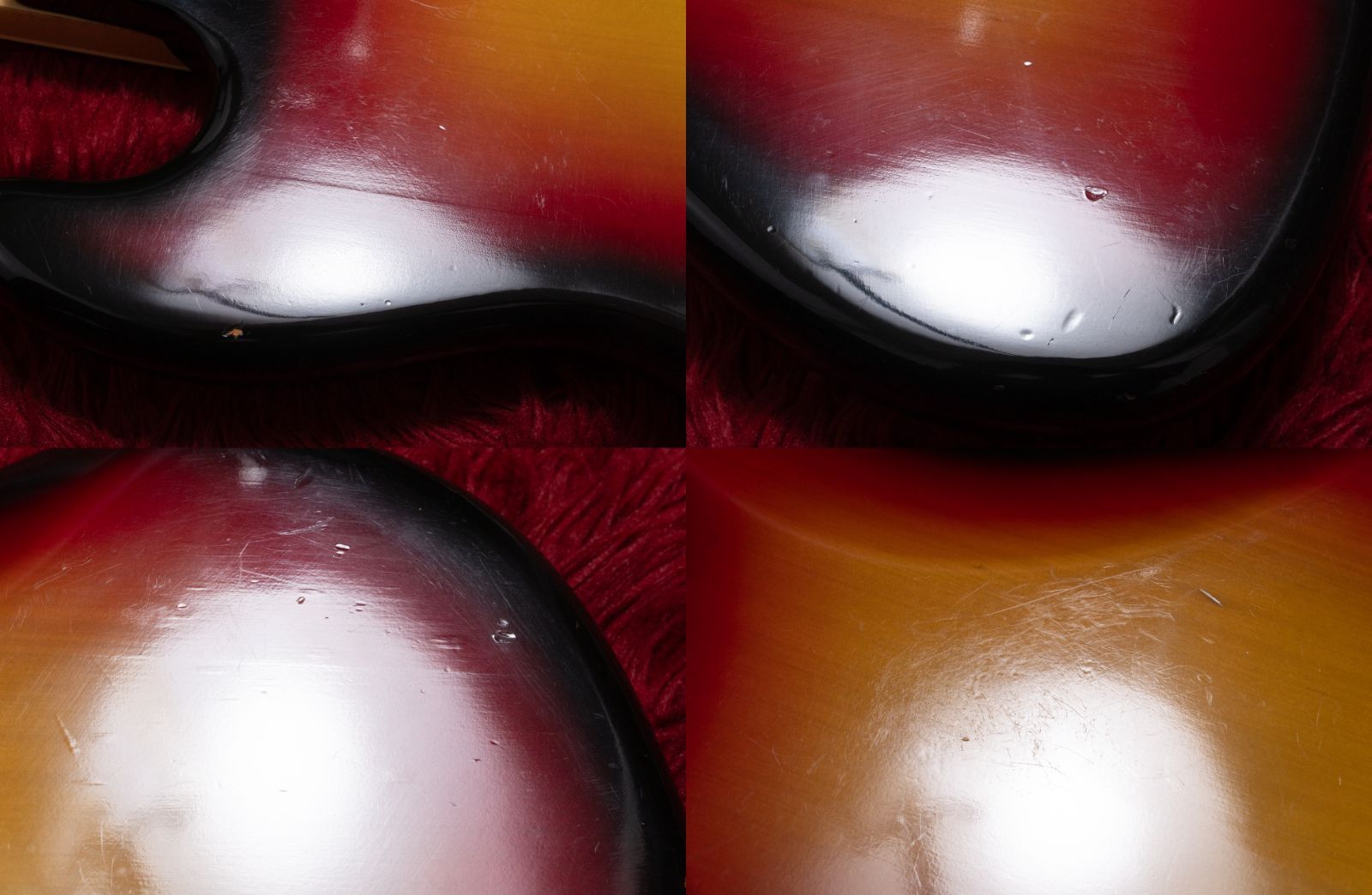 ボディや塗装面は、スクラッチ傷、打痕が見受けられ、使用感があります。ピックアップフェンスをつけていたようなビス穴の跡が見受けられます。