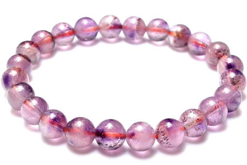 パワーストーンの定番アメジストに、細かなゲーサイトやレピドクロサイトが入っているアメジストスーパーセブンです。