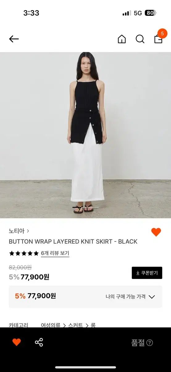ノティア ボタンラップ レイヤード ニット スカート 黒