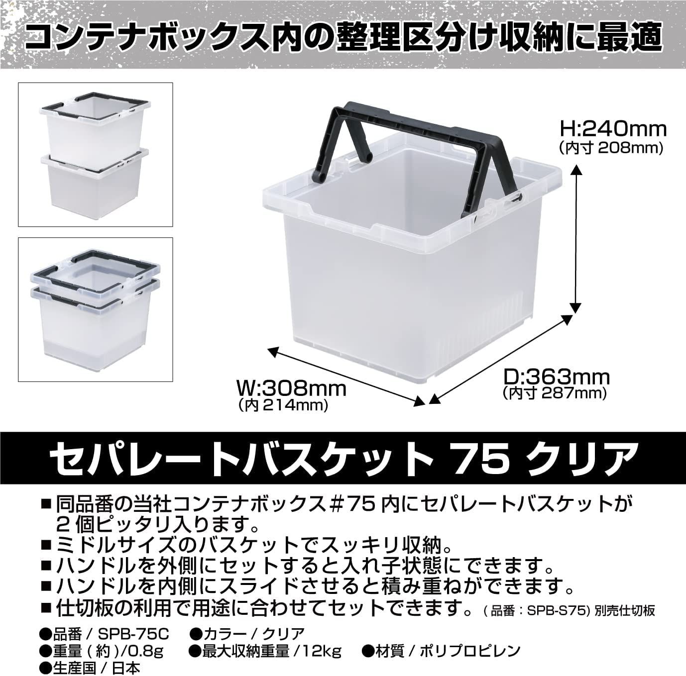 JEJアステージ 収納ボックス セパレートバスケット 75 クリア アウトドア キャンプ 積み重ね SPB N C 幅30 8 奥行36 3 高さ24 cm セット