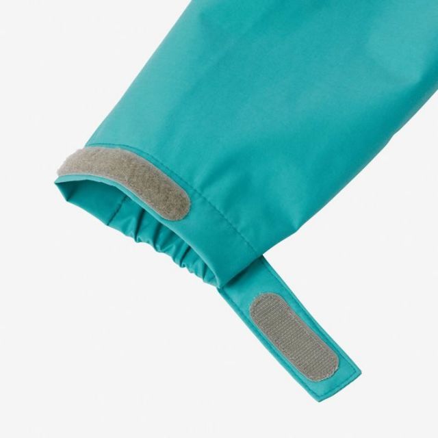 素材は、防水透湿性に優れ、雨の中でも快適さを維持するヘリーテックパフォーマンス2.5層構造。2重になる前立てデザインを採用して、防水性を高めています。フロント部分は子どもでも開閉しやすく、横方向に強く引くと外れる、安全性を考慮したQuickFreeファスナーを使用。シルエットは、重ね着がしやすいゆったりめに。後ろ裾にリフレクトワッペンを配し、夜間や悪天時の視認性を向上させています。