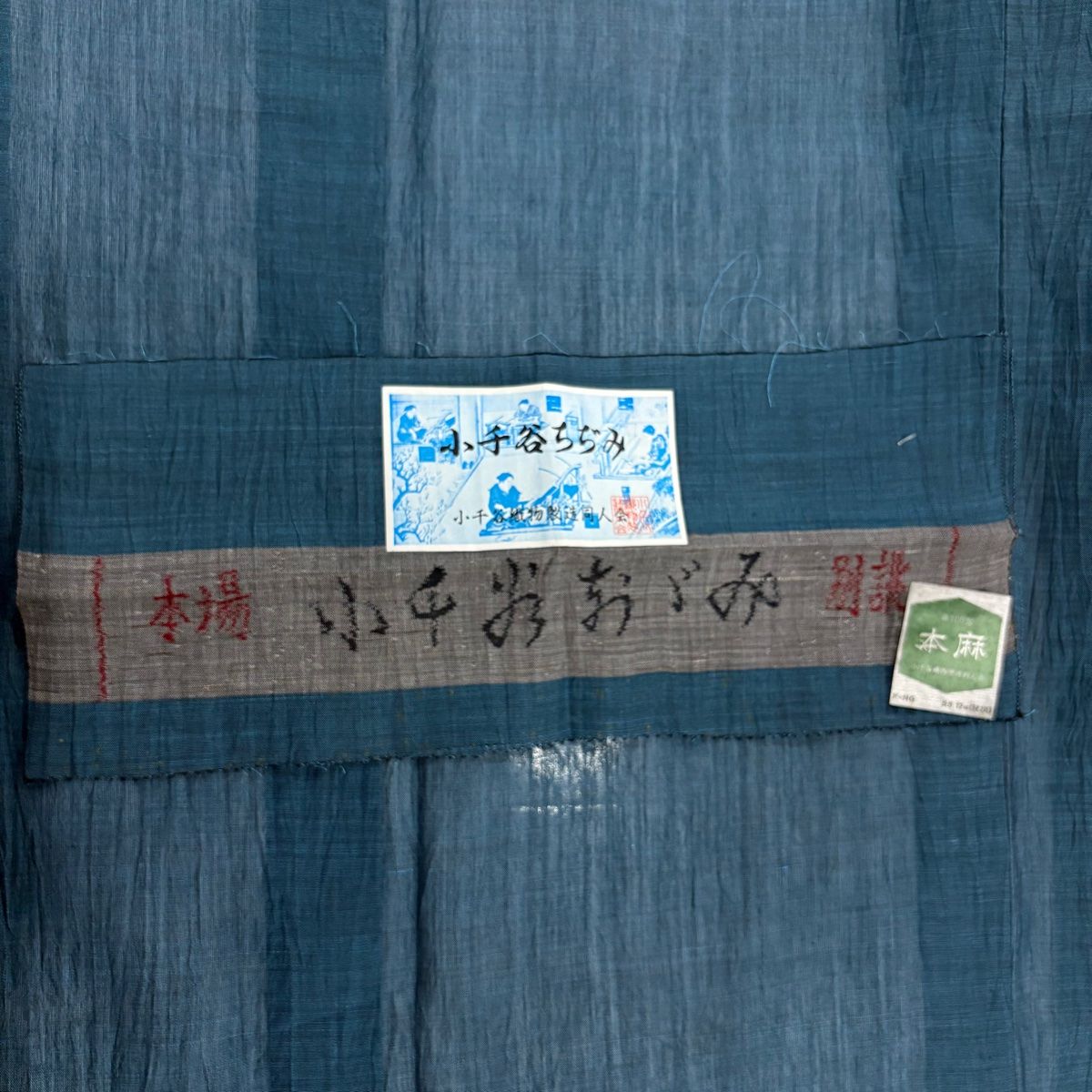 男着物 身丈139 cm 裄丈68 S 薄物 小千谷ちぢみ 証紙 青灰色 綿 秀品