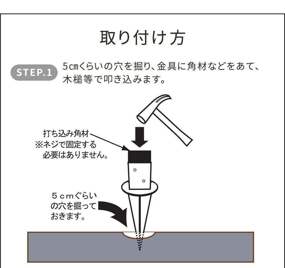 設置位置の土中に障害物がないかご確認の上、設置してください。