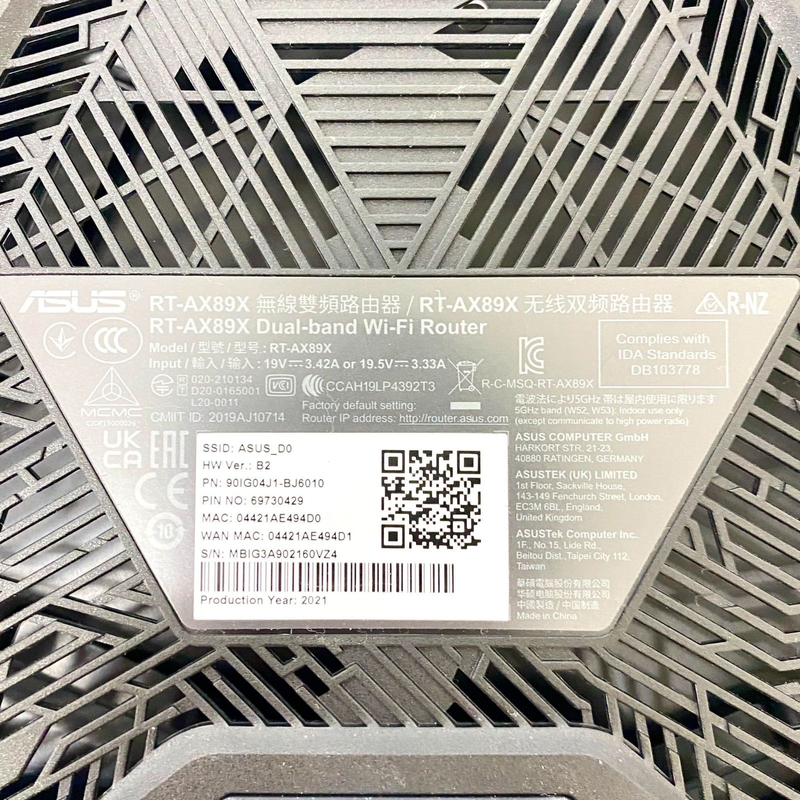 ASUSTek RT-AX 89 X WiFi無線ルーター 3653
