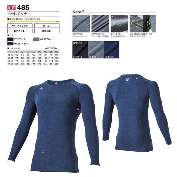 鳳皇 485 ホットインナー ブラック XLサイズ セット