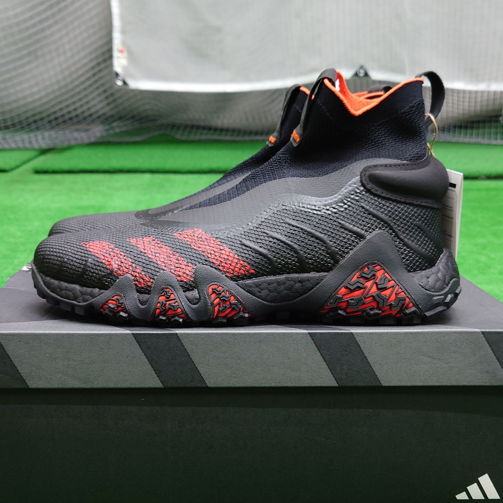 アディダスゴルフ コードカオス レースレス ブースト ゴルフ 27.5 cm ブラック レッド ゴルフシューズ スパイクレス OUTLET品