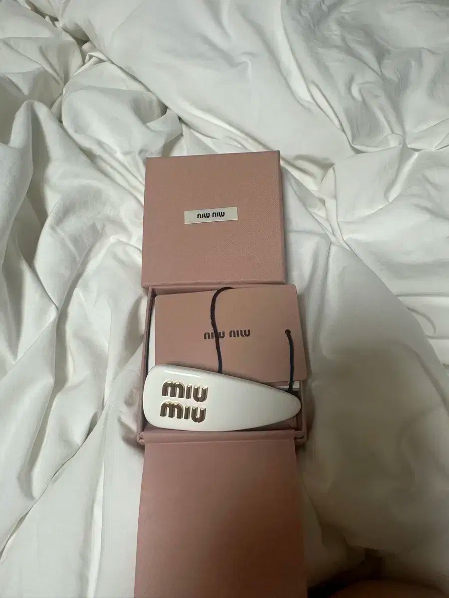 ミュウミュウのロゴが入ったヘアピン。ゴールドのロゴが入ったアイボリーカラーのヘアピンは高級感があります。ミュウミュウミュウ店舗でパンギョのヒュンダイ百貨店で買って、一度体力旅行に行ったことがあって、2~3時間くらいそのまま保管されていました。箱とパッケージ、さらにはショッピングバッグを含むフルセットを提供します。