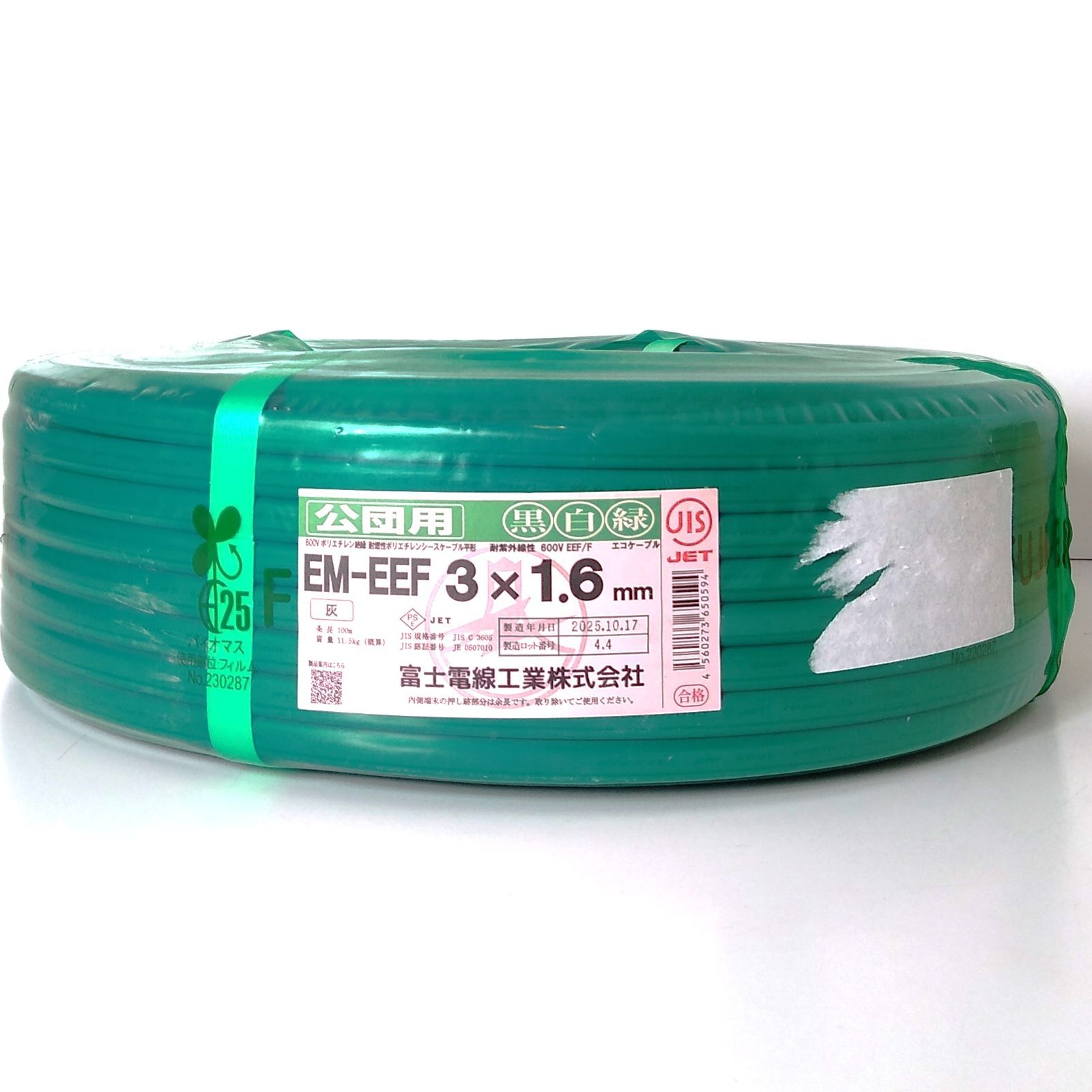 X 04765 富士電線 公団用 EM-EEF .6㎜ 灰 黒白緑 電線 建築資材 電気工事 ケーブル