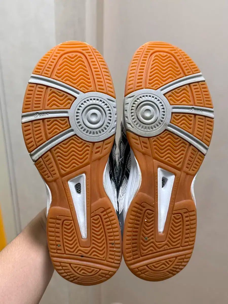 アシックス ローテ リーブレ バドミントンシューズ 24.5cmです。白 バターンにネイビー アシックス ロゴがPOINTです。 밑창もきれいなことから使用感ほぼない商品です。コメントなければすぐ安全決済してください!
