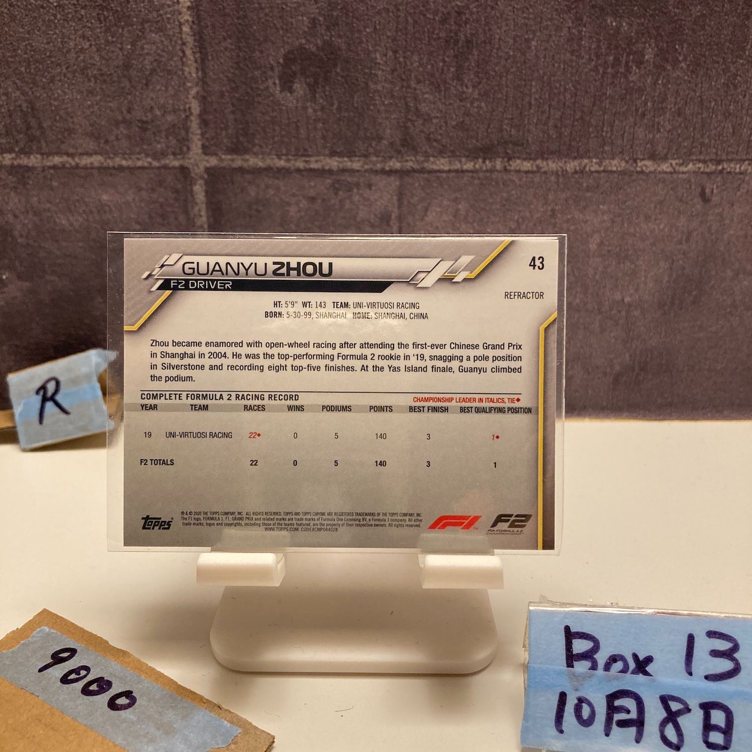 2020 Topps Formula 2 Guanyu Zhou UNI-Virtuosi Racing Future Stars Refractor