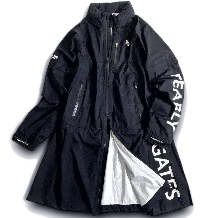 PEARLY GATES パーリーゲイツ ゴルフ 撥水×防風 シャドー千鳥柄 ストレッチ 2 wayスリーブ ワンピース ロングジャケット レインウェア ゴルフウェア レディース 053-2988306 定価4.6万 ネイビーブラック 051 51015 w 14