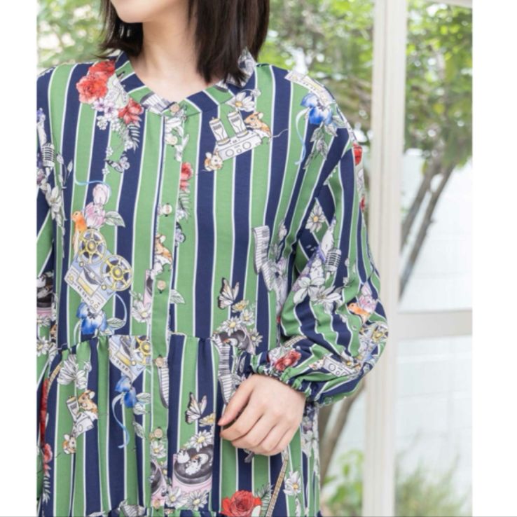 ティアード部分で切り替わる柄がアクセントになって、微妙な柄のズレがまるでリメイクのような特別感を演出。