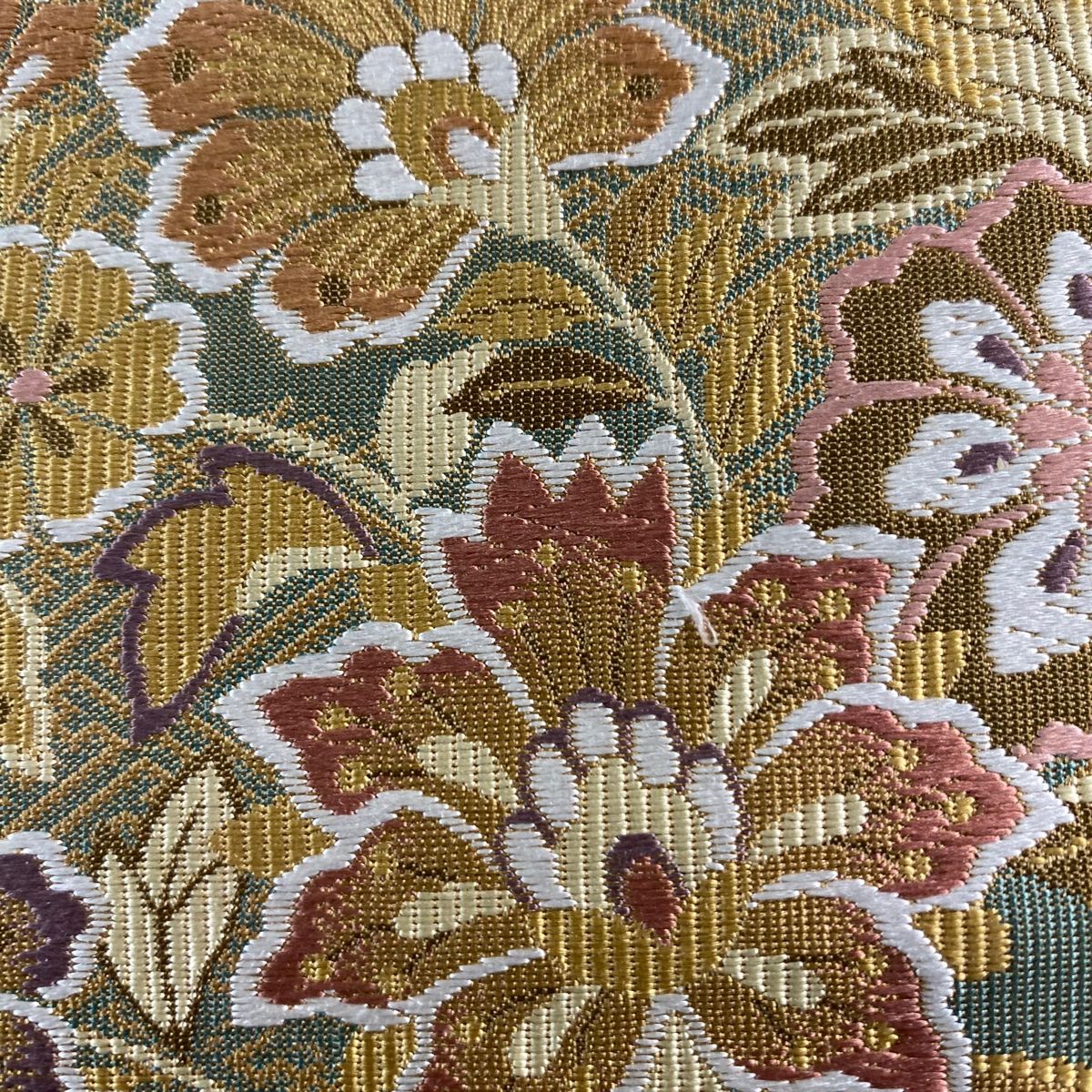 袋帯 草花 華文 黄土色 六通 正絹