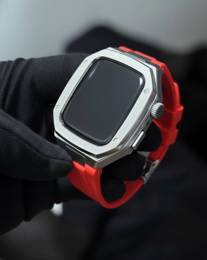レッドシルバー 組み立て 別注ラバー アップルウォッチケース カスタム カバー 保護 44 mm 45 46 アップルウォッチカスタム series 1 2 3 4 5 6 7 8 9 10 11 SE バンド ベルト