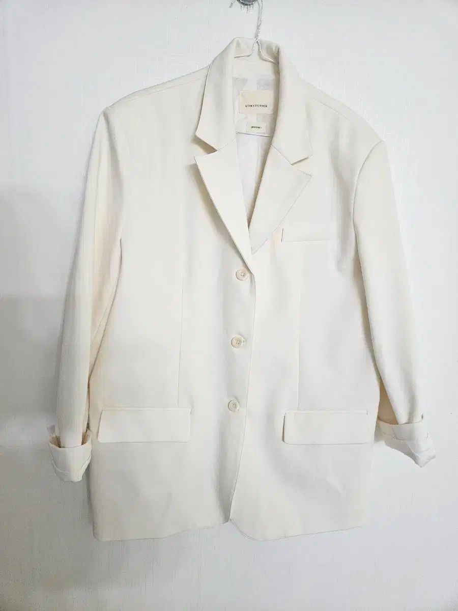 これはアイボリーカラーのサマージャケットなしです。ルーズフィットでスタイリッシュに見えます。このジャケットは普段着に最適です。