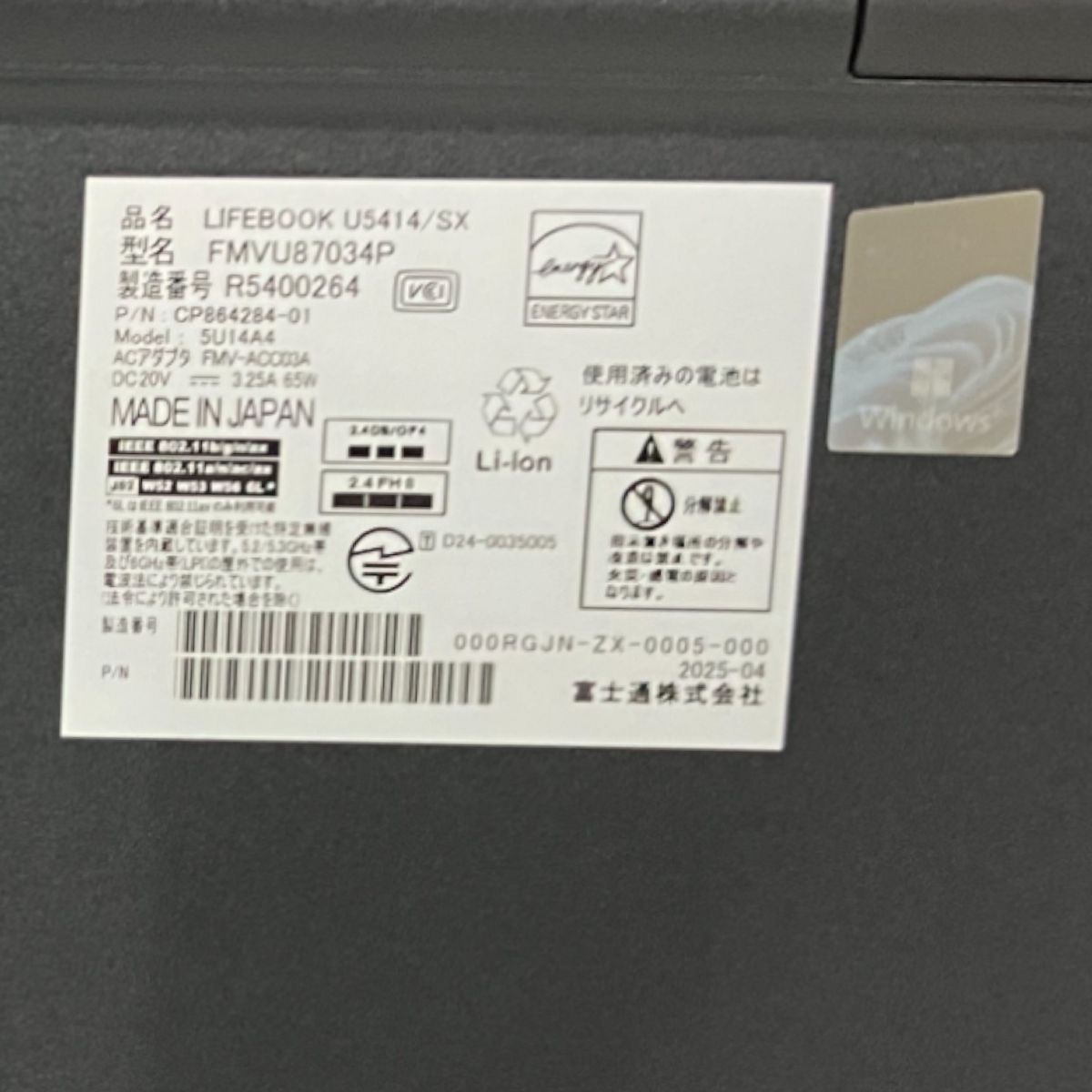 型番: LIFEBOOK U5414/SX