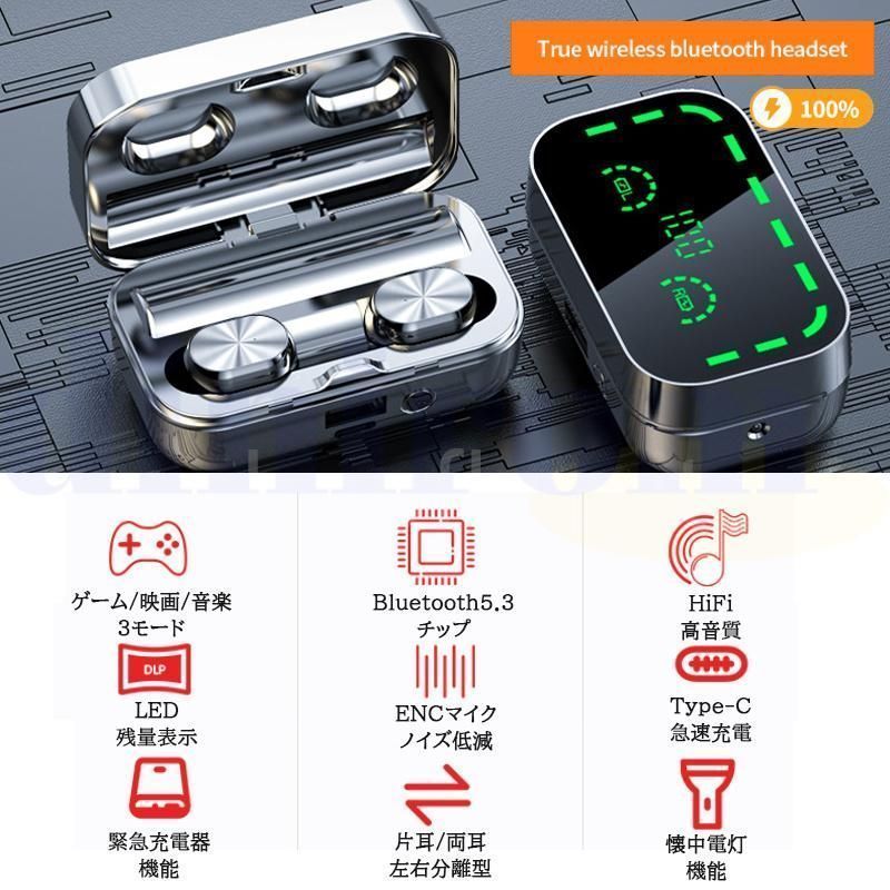 ワイヤレスイヤホン Bluetooth 5.3 残電表示 ブルートゥース 高音質 Hi-Fi 片耳 両耳 超軽量 モバイルバッテリー zSPf 508