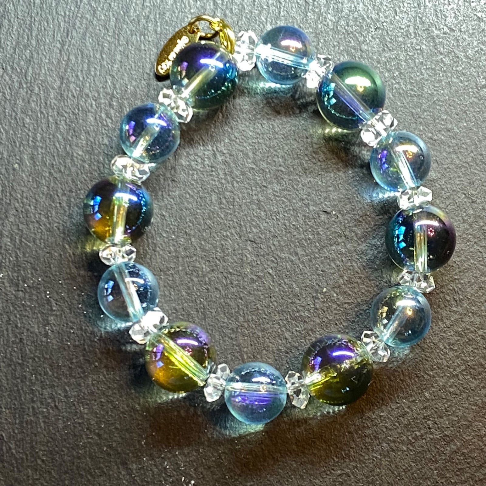 グリーンオーラ - ペールブルー オーラクォーツ光波動ブレスレット 約14.5㎝