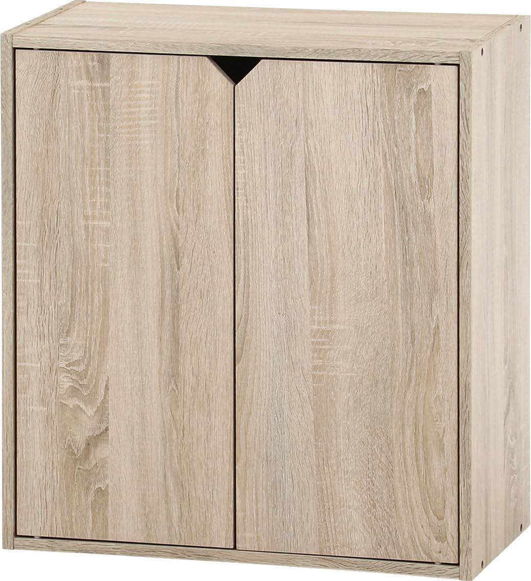 Color:オーク_Style:収納ボックス 不二貿易 連結できる収納ボックス 扉付 幅60×奥行29×高さ64.6cm オーク 52263