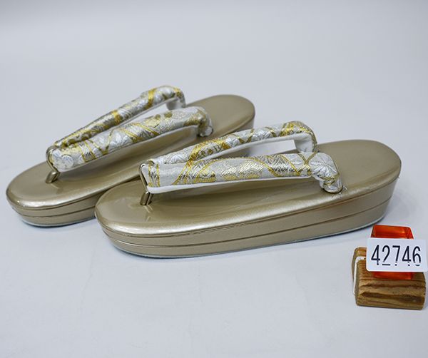 草履バッグセット 金銀帯地 二段 24 cm フリーサイズ 適合足サイズ22.5 cm~24.5 振袖 成人式 留袖 結婚式 NO 42746