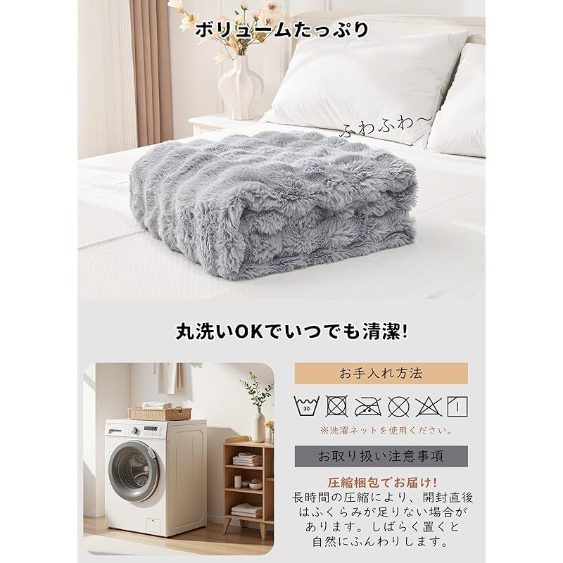 【おしゃれで高級感のあるデザイン】立体的なもこもこデザインが特徴で、インテリアのアクセントにもぴったり。シンプルながら高級感を兼ね備えたブランケットは、ご自宅用はもちろん、新築祝いやクリスマスプレゼントとしても喜ばれます。高精度な縫製と二重ロック縁仕様により、ほつれにくく長持ち。さらに静電気防止加工を施しており、冬場のパチッとした不快感やホコリの付着を軽減。日常使いに配慮した安心設計です。