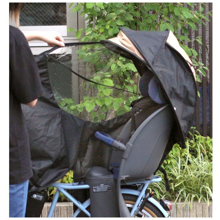 自転車の後ろ用のレインカバーで国内メーカーのシートに幅広く適合。