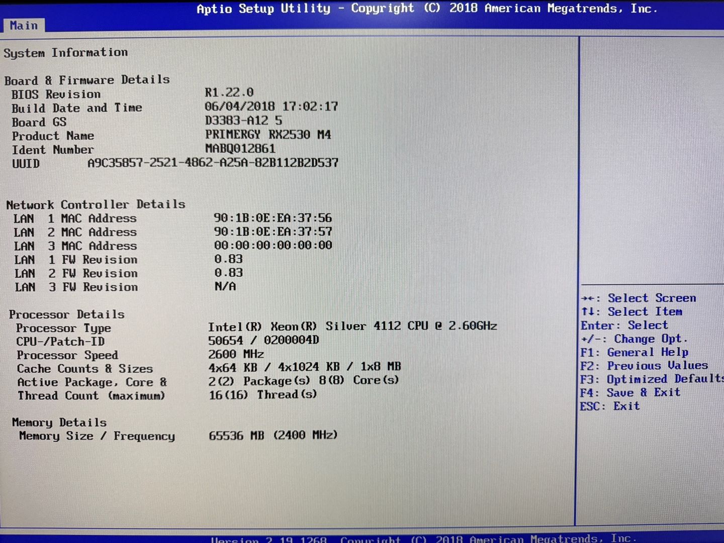 Processor : Silver 4112 4Core 2.60GHz