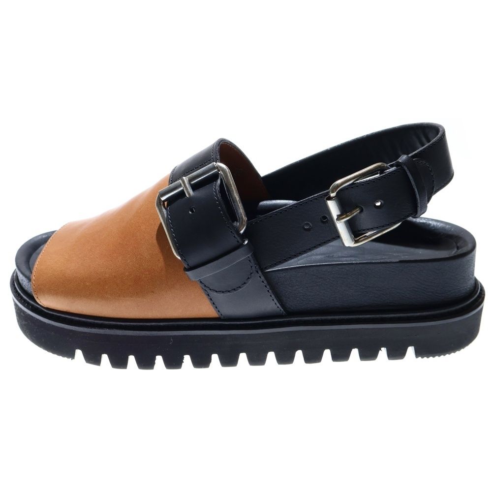 【品名】カラーブロック ストラップ付き レザーサンダル ブラック/ブラウン レディース SACSB02A00